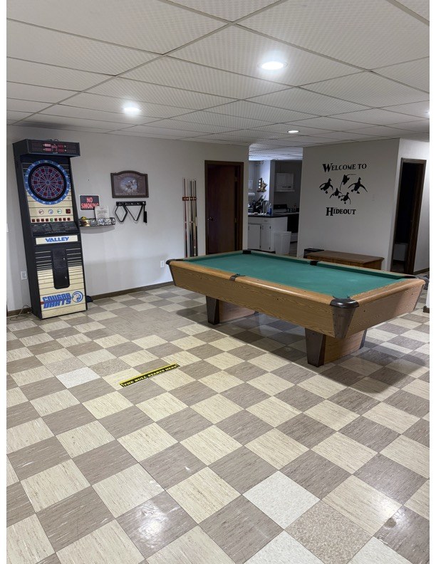 Pets are allowed in the attached heated game‑cleaning area, and there is a fenced dog run on the property.